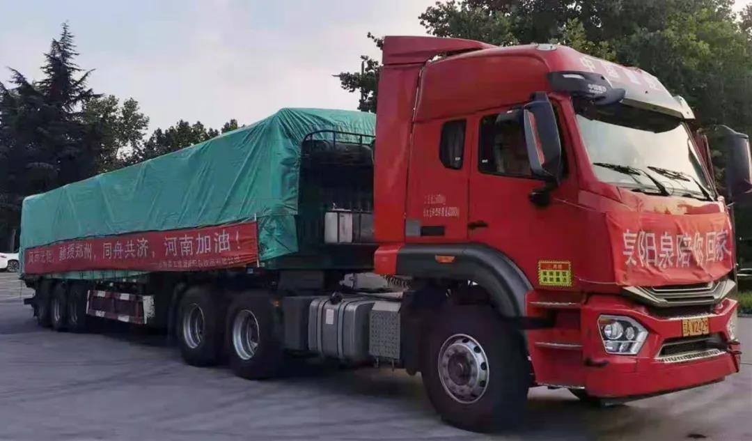 ? ? ? 今年7月中旬,河南省出現持續性極端強降雨,造成鄭州、新鄉、安陽、鶴壁等多個縣市、鄉鎮受災。河南人民群眾的生命和財產安全受到威脅。洪水肆虐,災情牽動著全國人民的心。2021年7月25日,吉林森工集團泉陽泉飲品有限公司從泉陽工廠整裝出發,穿越1800公里,馳援鄭州,為河南人民送去必要的救災物資。
